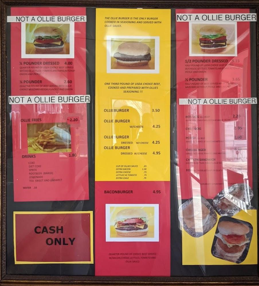 Key items include the signature Ollie burger, Chile burgers, and chicken sandwiches. Every option comes with that beloved fry side, providing a satisfying crunch that locals can’t resist.